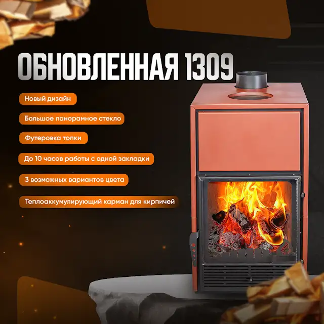 Печь-камин Гармония 1309 способна обогреть помещение объемом до 200 куб.м. Камин выполнен из стали толщиной 4 мм, что обеспечивает безаварийную эксплуатацию в течении длительного периода использования.