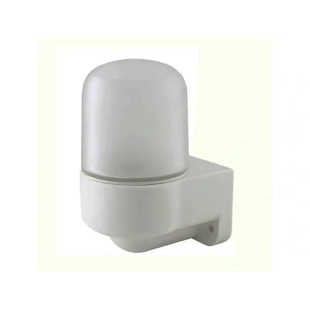 Корпус изготовлен из керамики, материал плафона- силикатное термостойкое стекло матового цвета. Между корпусом и плафоном светильника установлено термостойкое силиконовое уплотнение для защиты от проникновения влажного пара, брызг воды и пыли. Характерной особенностью является форма цоколя с монтажной площадкой под углом 90°.